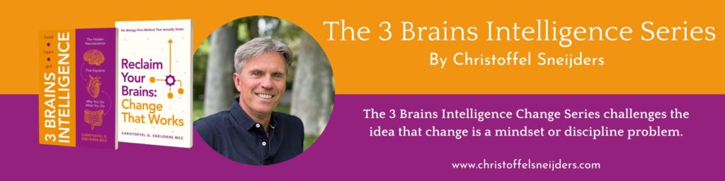 Christoffel Sneijders is an executive leadership coach, trainer, and creator of the 3 Brains Intelligence framework, a neuroscience-based model that explains why intelligent, capable people still struggle with burnout, conflict, and stalled change. With more than 30 years of experience working with leaders and organizations across Europe, the Middle East, Asia, the USA, and Australia, he has consistently observed that insight and willpower alone are not enough to create lasting transformation. His work reveals that human decision-making is driven by three distinct centers, the Head, Heart, and Gut, each with its own priorities and survival patterns. When these three brains are aligned, sustainable change becomes possible. As founder of the 3 Brains Intelligence Academy, Christoffel trains coaches and leaders worldwide through ICF-accredited certification programs, translating complex neuroscience into practical, real-world tools that help professionals lead, decide, and perform with clarity under pressure.
